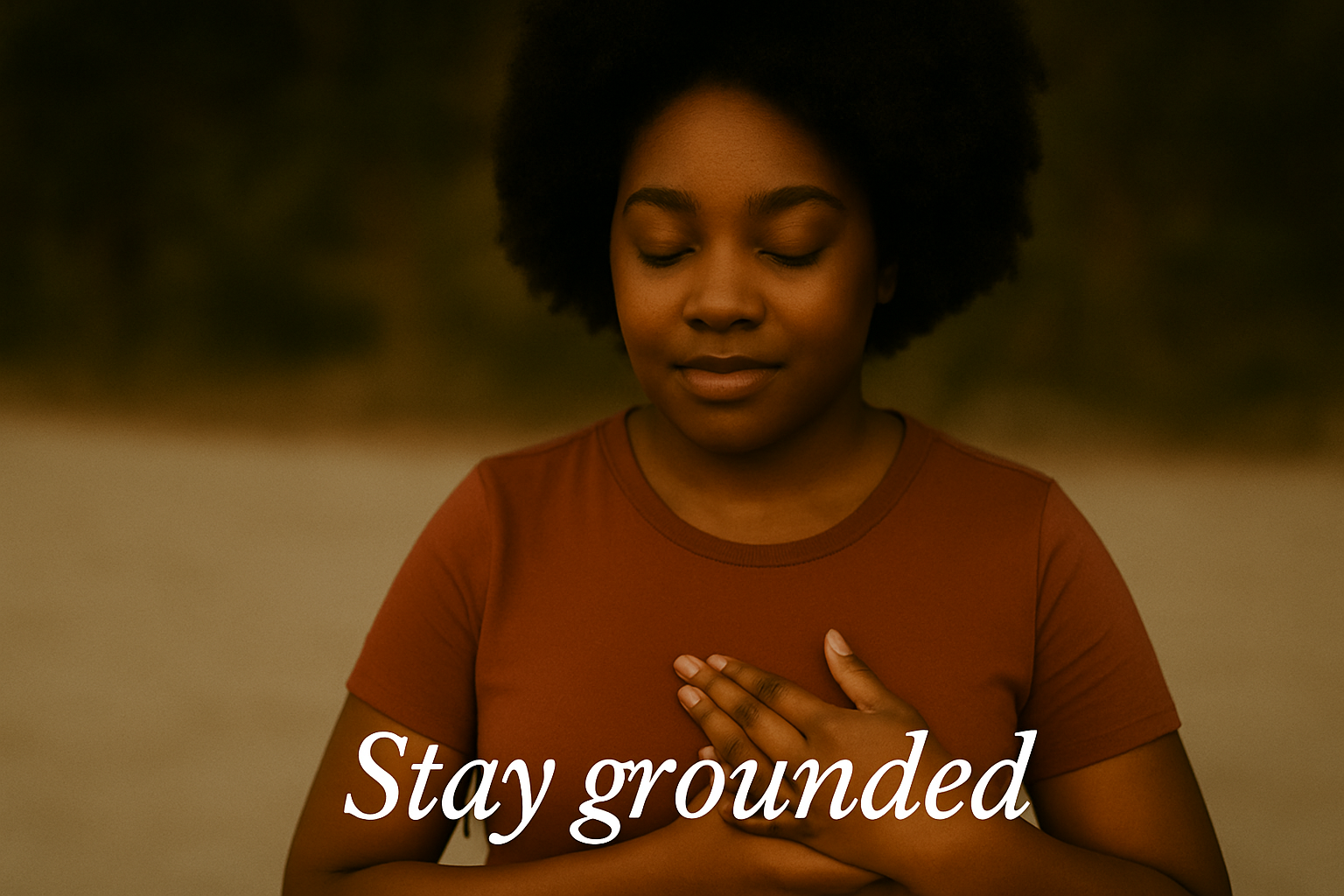 Say quietly or silently: “I am safe. I am grounded. I am here.” Feel the words sink into your body.